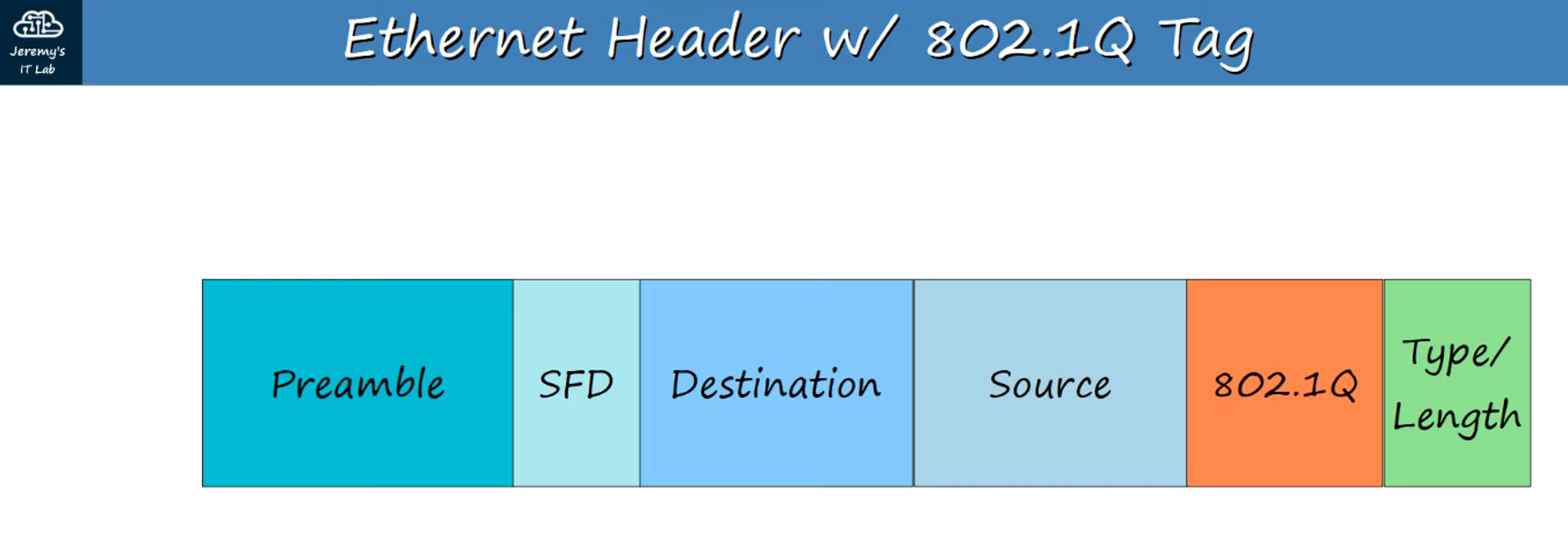 - The 802.1Q Tag is inserted between the Source MAC and Type/Length fields in the Ethernet frame.