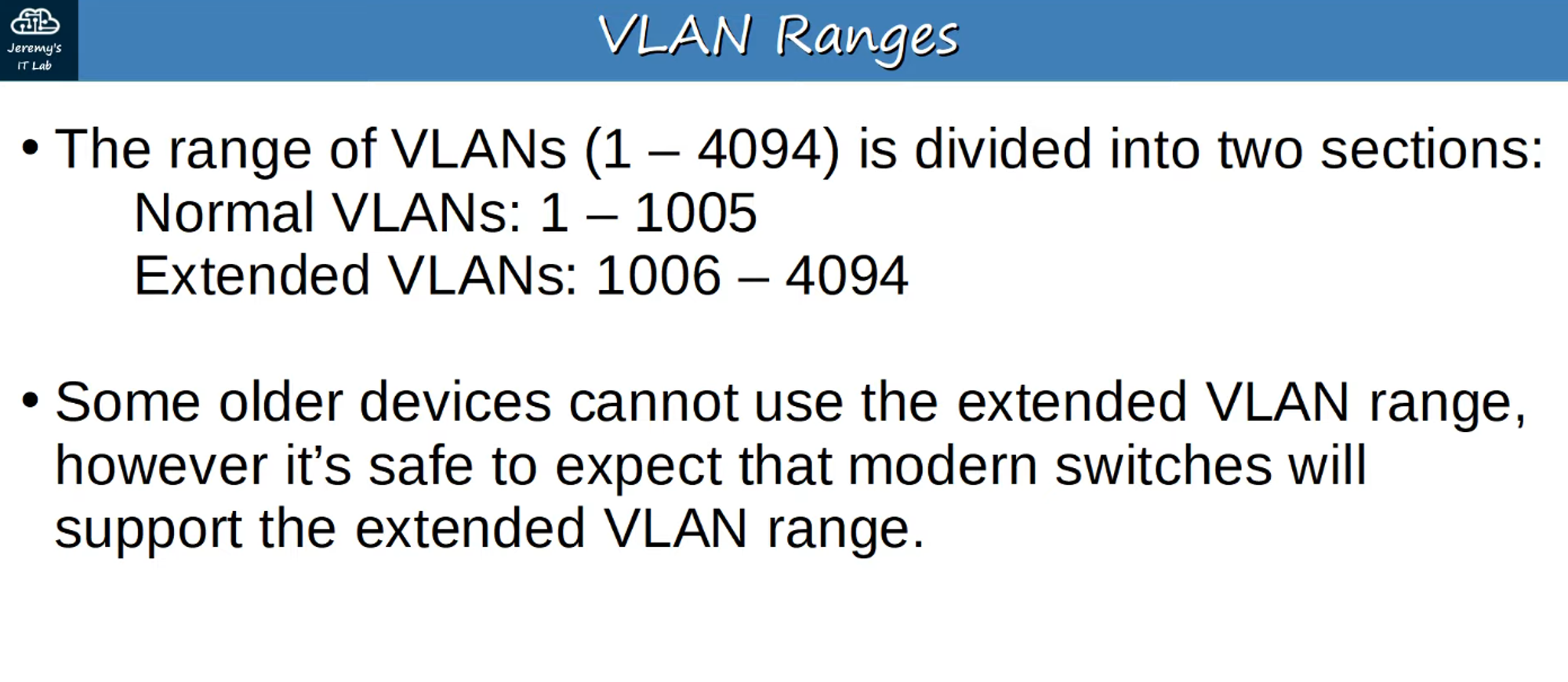 - Allows for 4096 VLANs (0-4095), but VLANs 0 and 4095 are reserved, so the usable range is 1-4094.