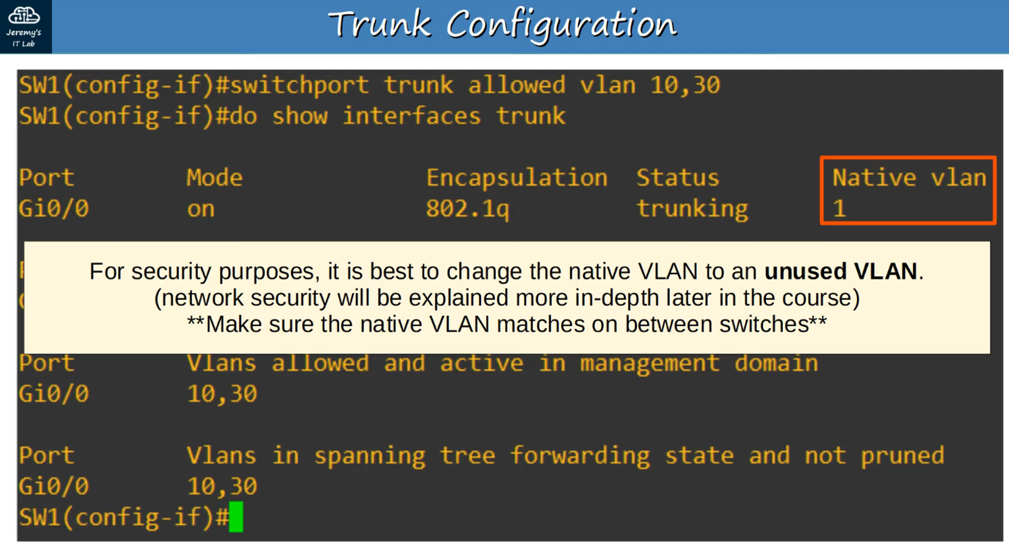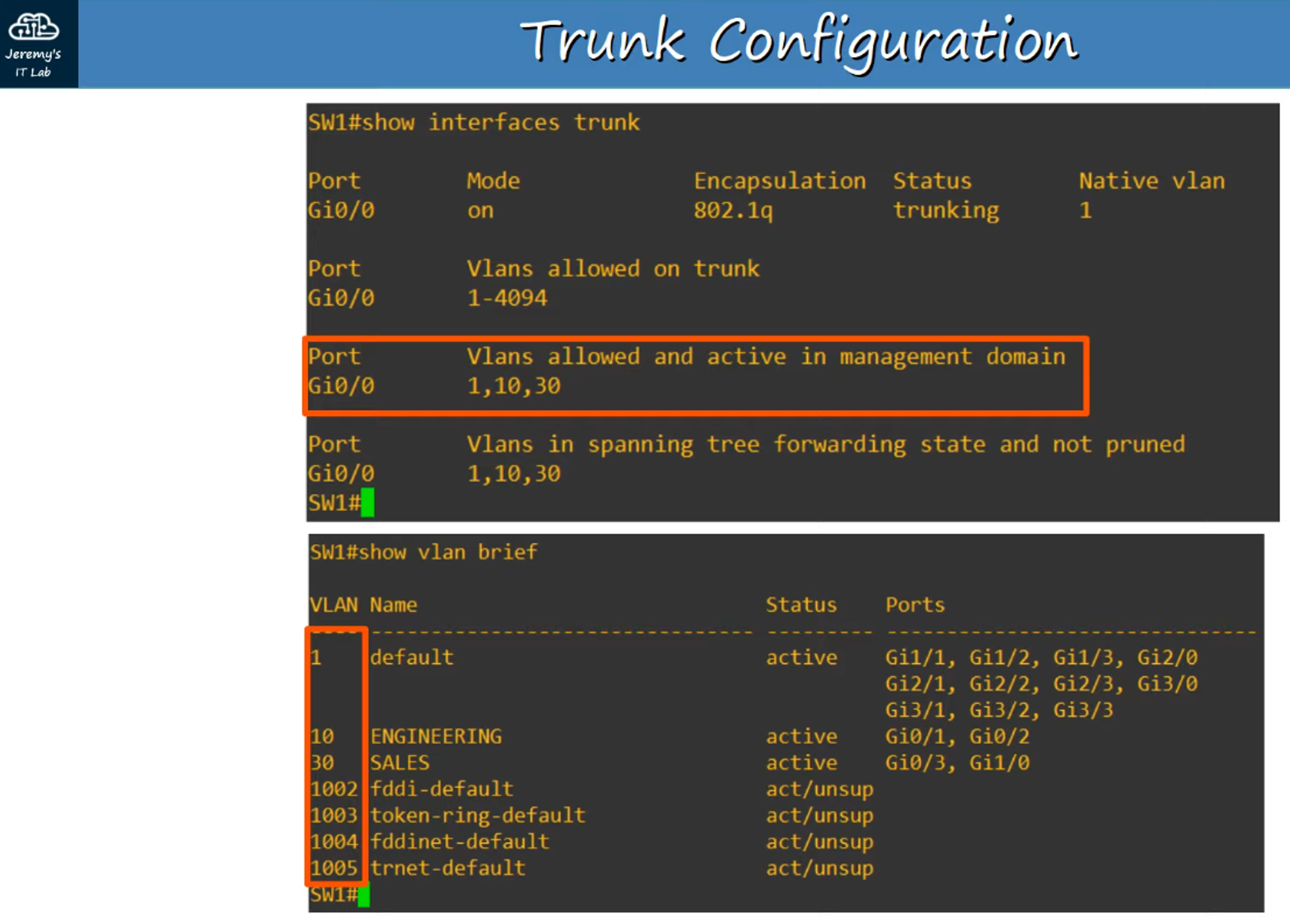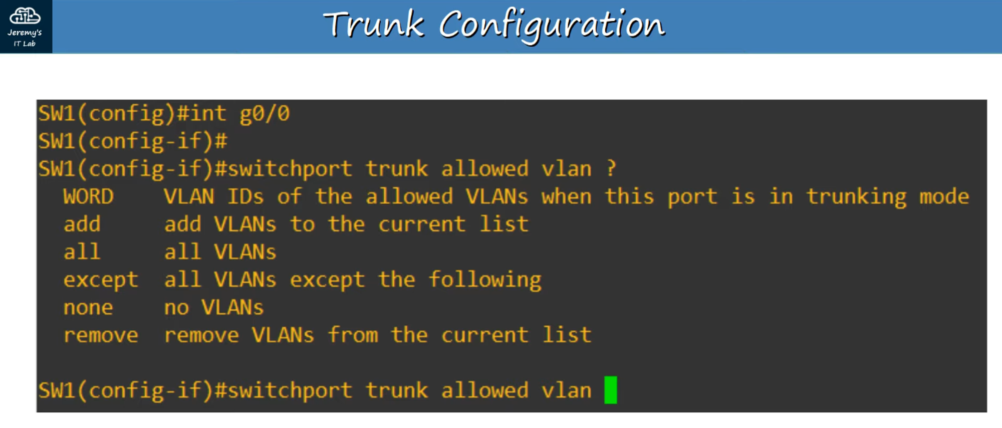 - You can specify which VLANs are allowed to traverse a trunk link.