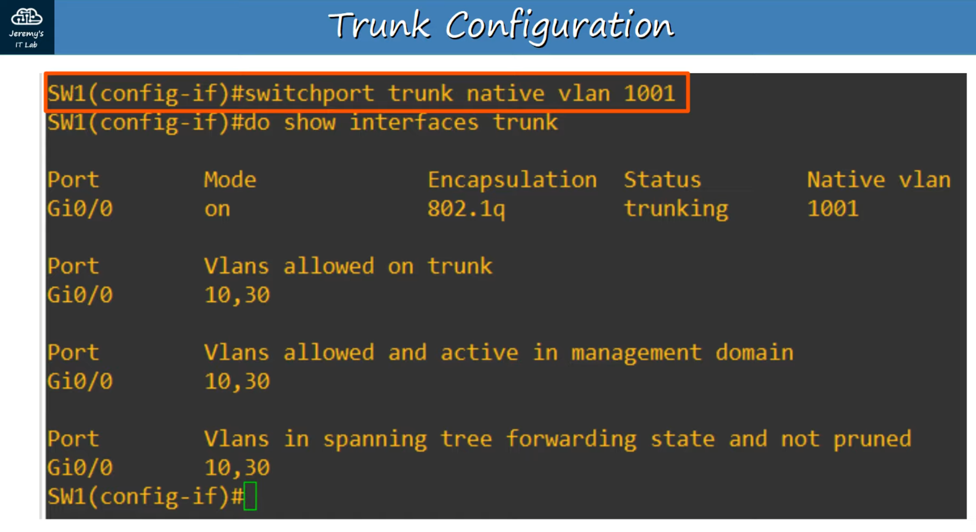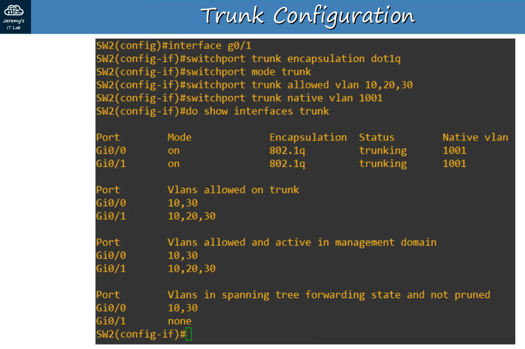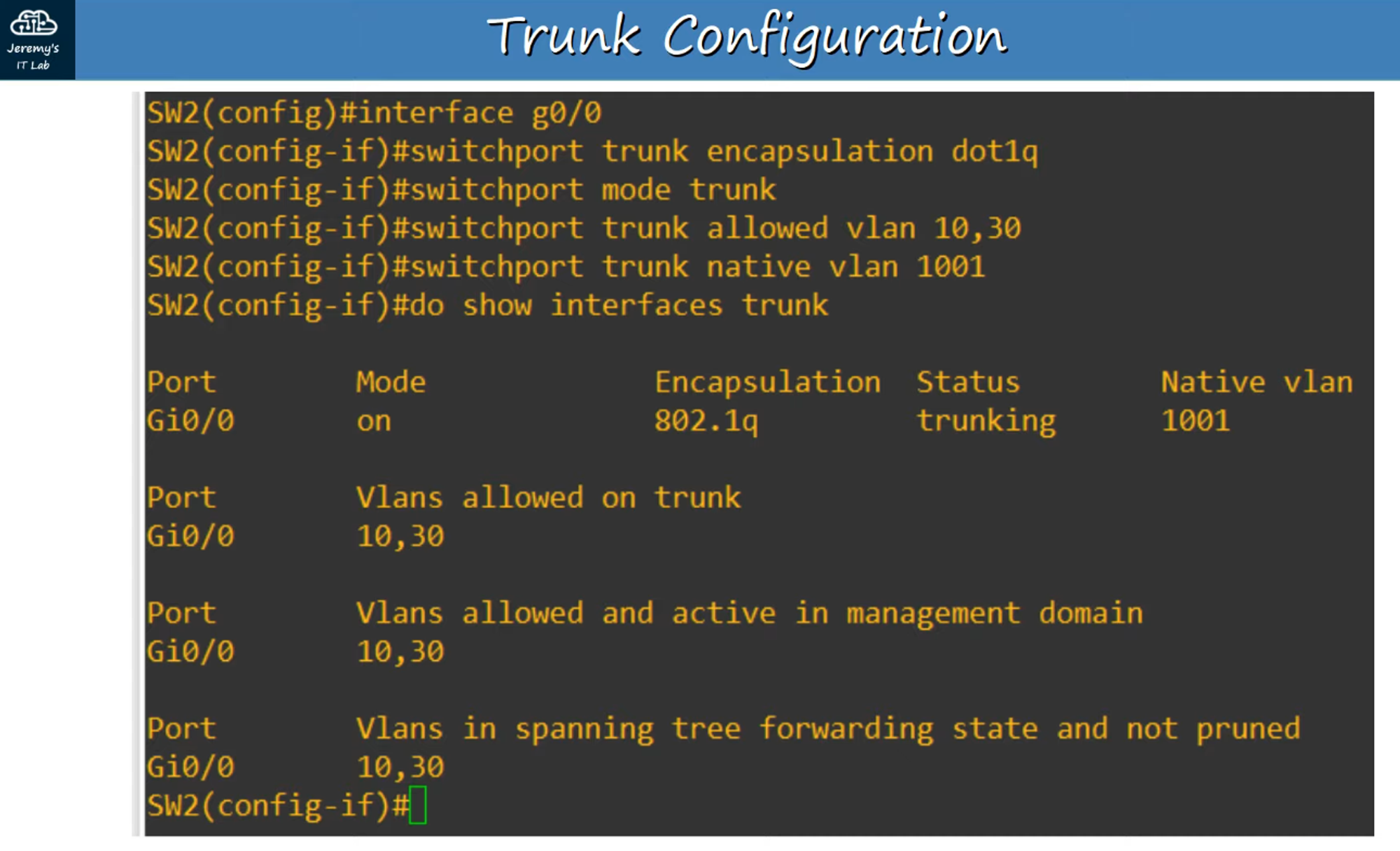 #switchport trunk encapsulation dot1qto set the encapsulation to 802.1Q.
