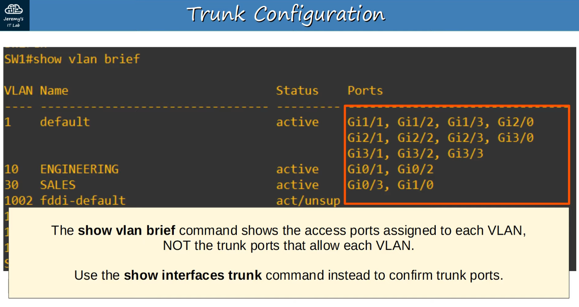 #show interfaces trunkcommand to confirm which interfaces are set as trunk ports.