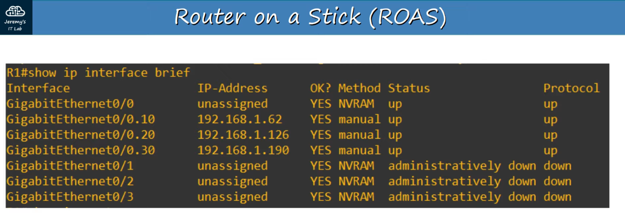However, as the number of VLANs increases, this method becomes inefficient. It leads to wasted interfaces, and often routers won’t have enough interfaces to support all VLANs.