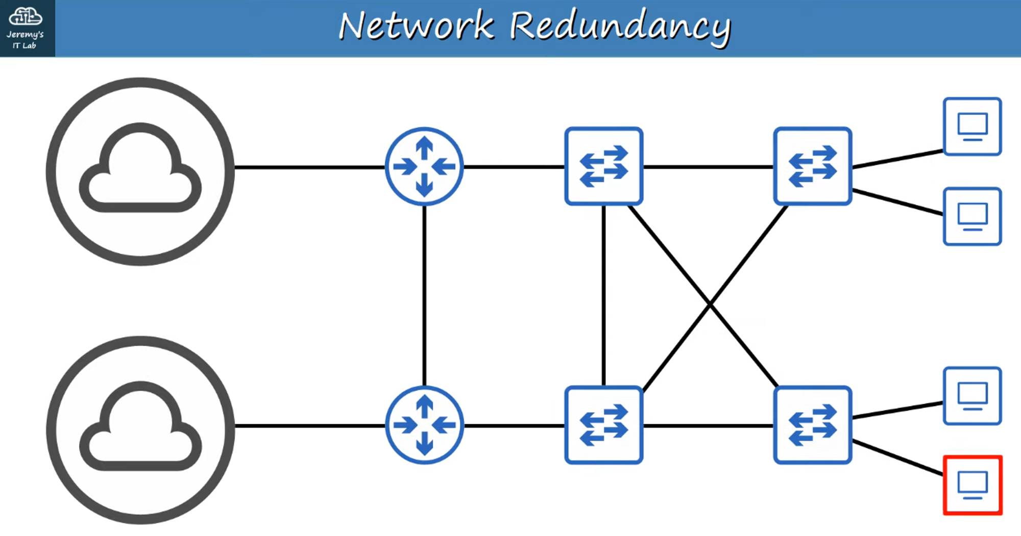 - Redundancy is critical in modern network design to ensure continuous availability.
