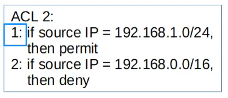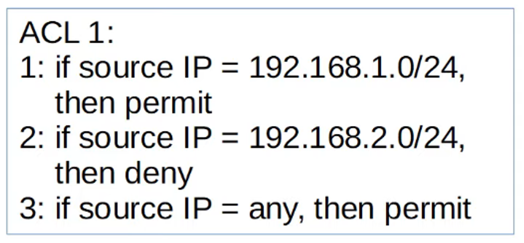 - If a packet fails to match any ACE, the implicit deny at the end will reject the traffic.