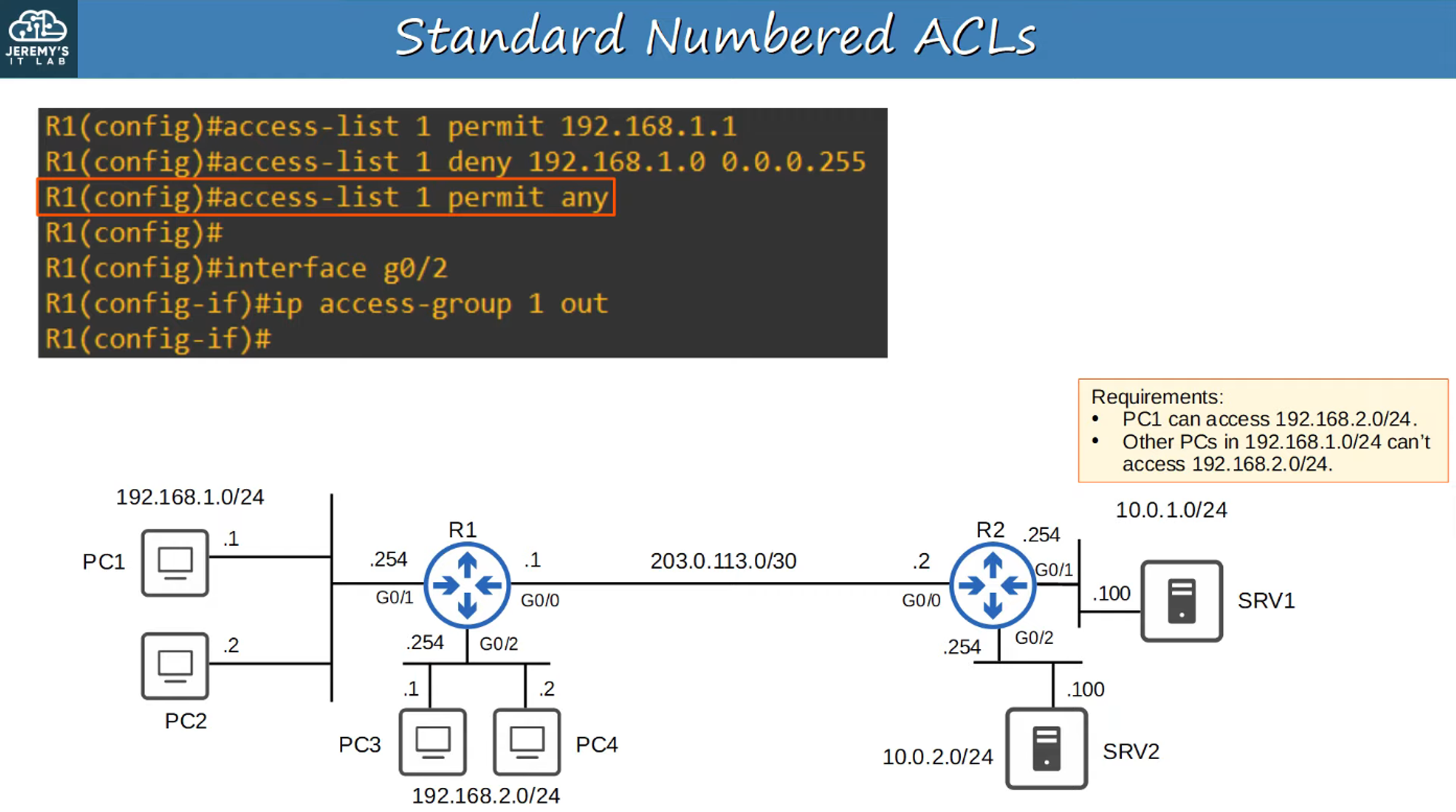 1.1.1.1. Alternatively, you can use:R1(config)# access-list 1 deny host 1.1.1.1 -