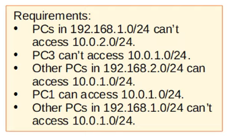 192.168.2.0/24network should not have access to the10.0.1.0/24network.