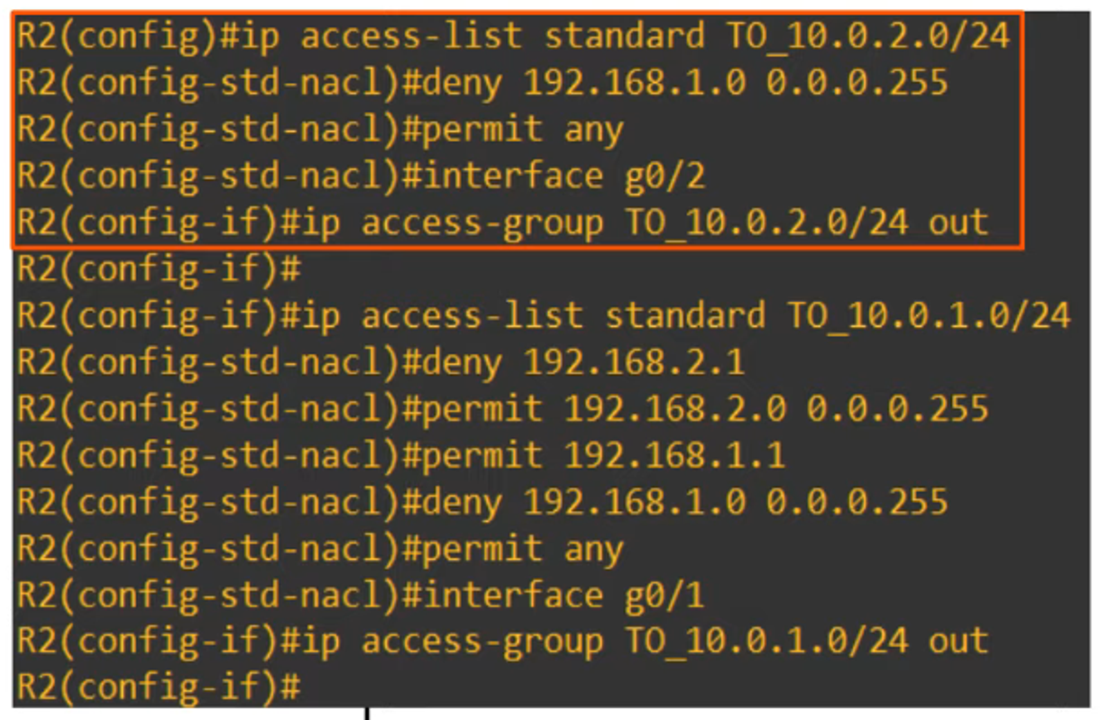 - Standard ACLs can use numbers from 1-99 and 1300-1999.