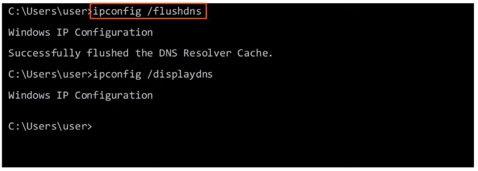 ipconfig /flushdnsclears the DNS cache, forcing the device to fetch fresh DNS information.