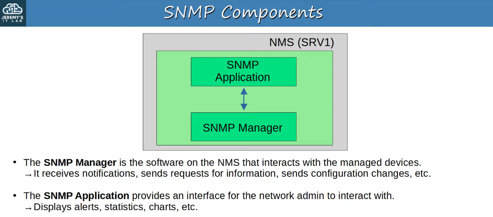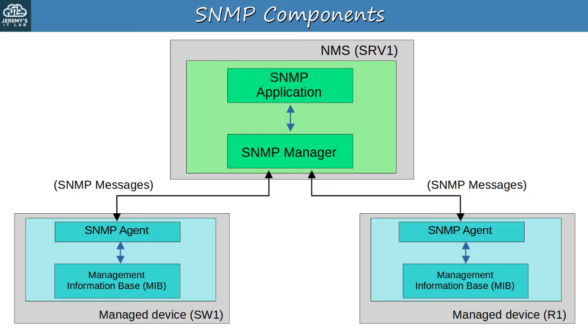 - Network Management Stations (NMS): Servers that manage the devices, receive notifications, and check the status of network equipment.