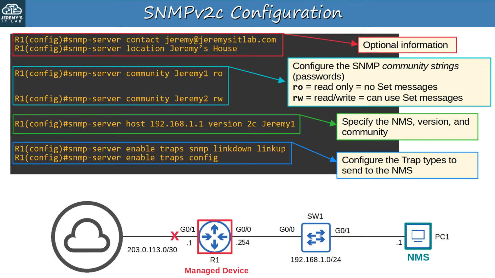 - Community string: Jeremy1 (Read-Only mode, meaning no configuration changes can be made).