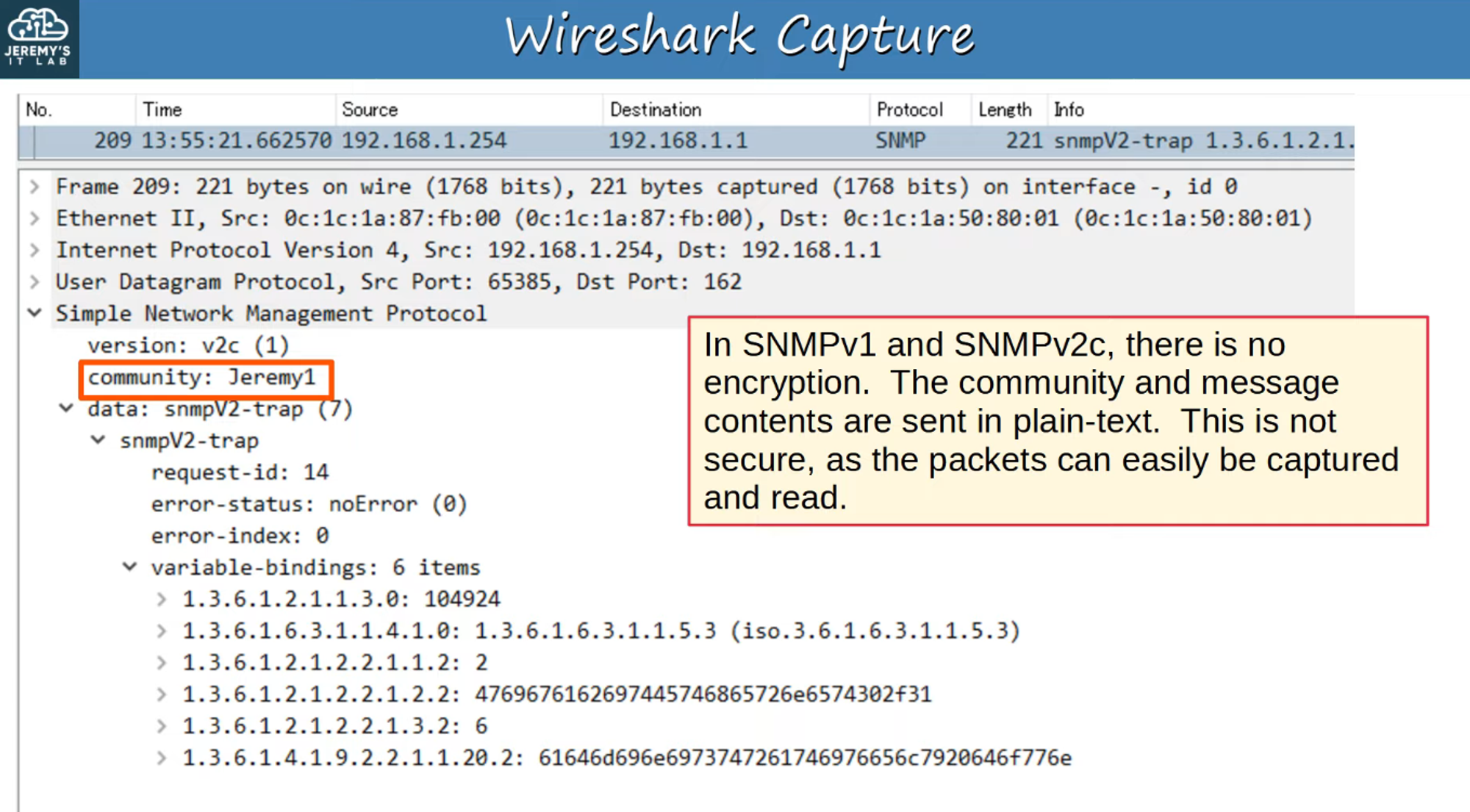 - The ‘c’ in SNMPv2c refers to the use of community strings (essentially passwords), reintroduced from SNMPv1 after being removed in SNMPv2.