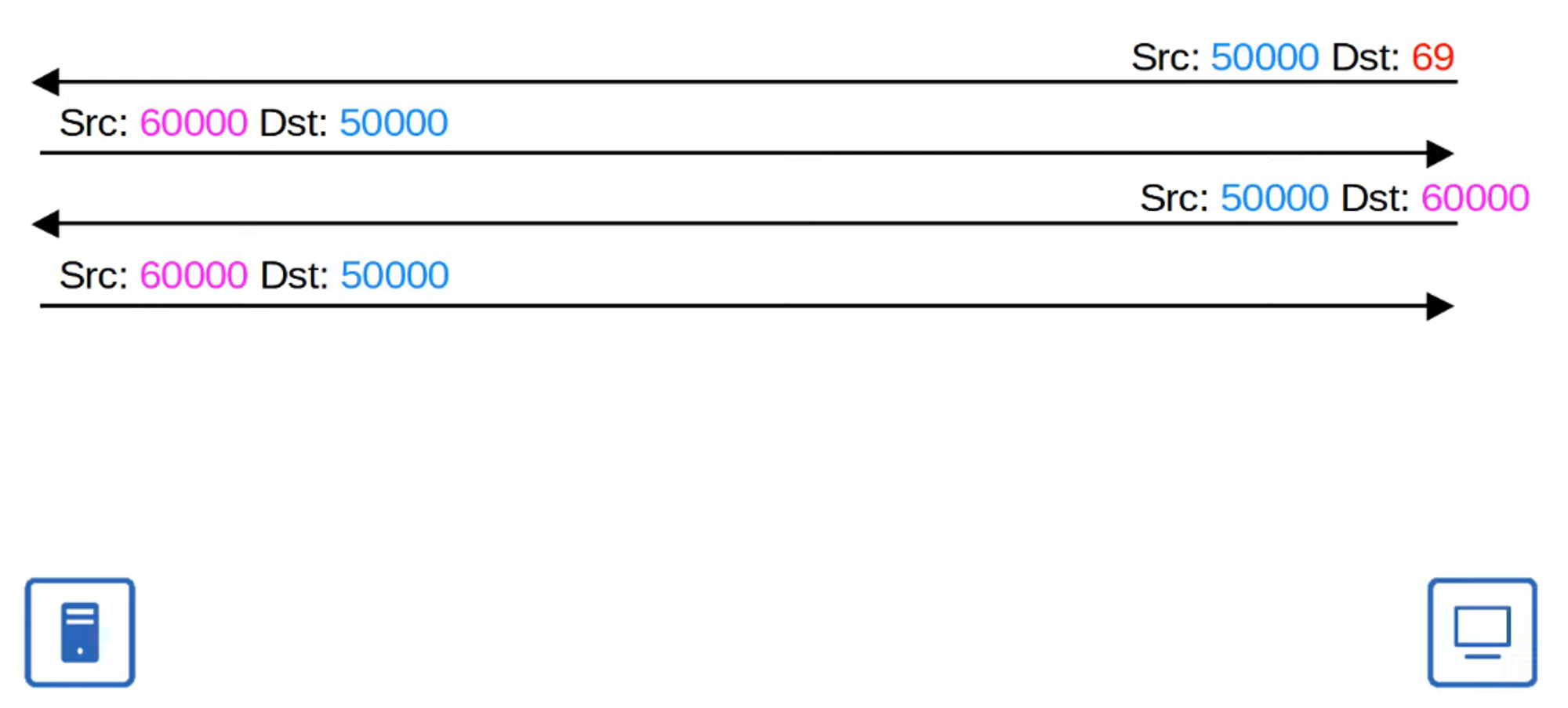 - The server also selects a random TID to use as a source port when replying, rather than using UDP 69.