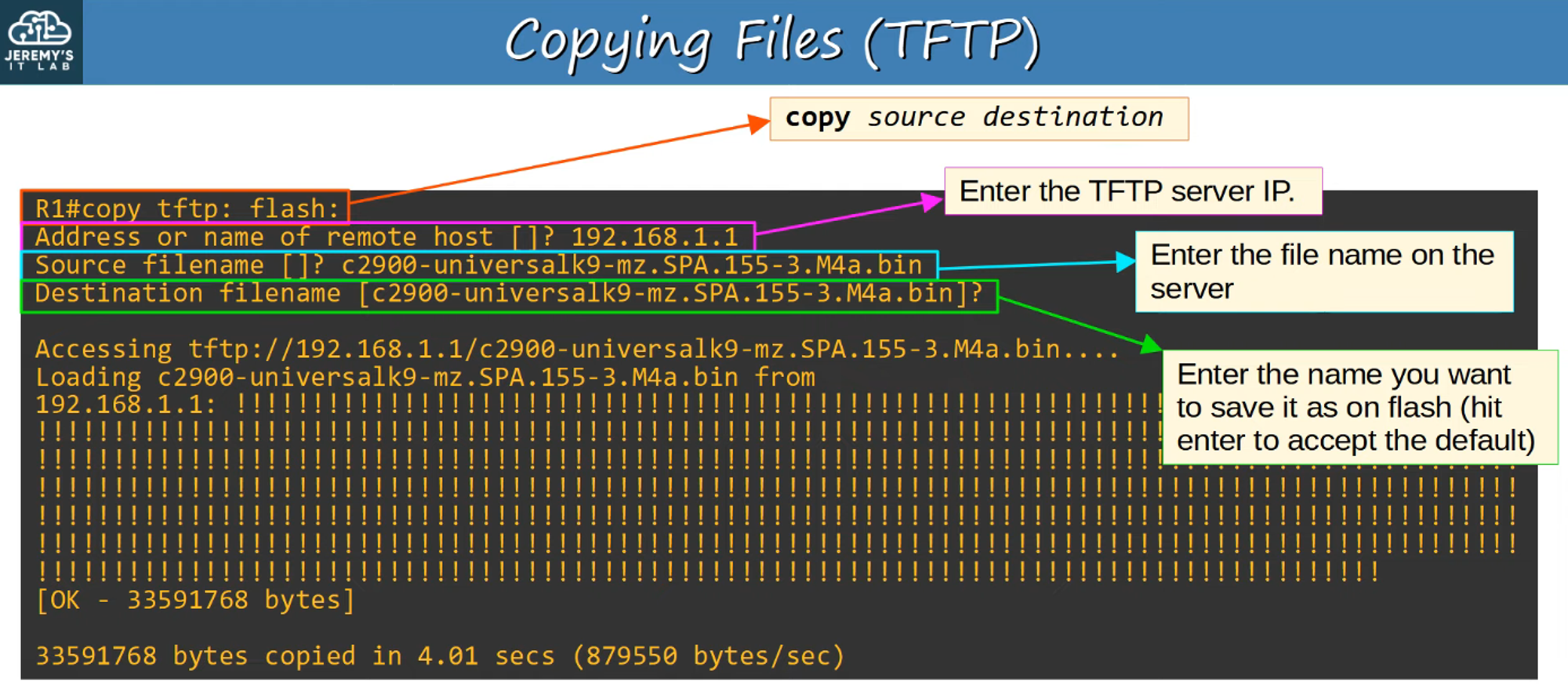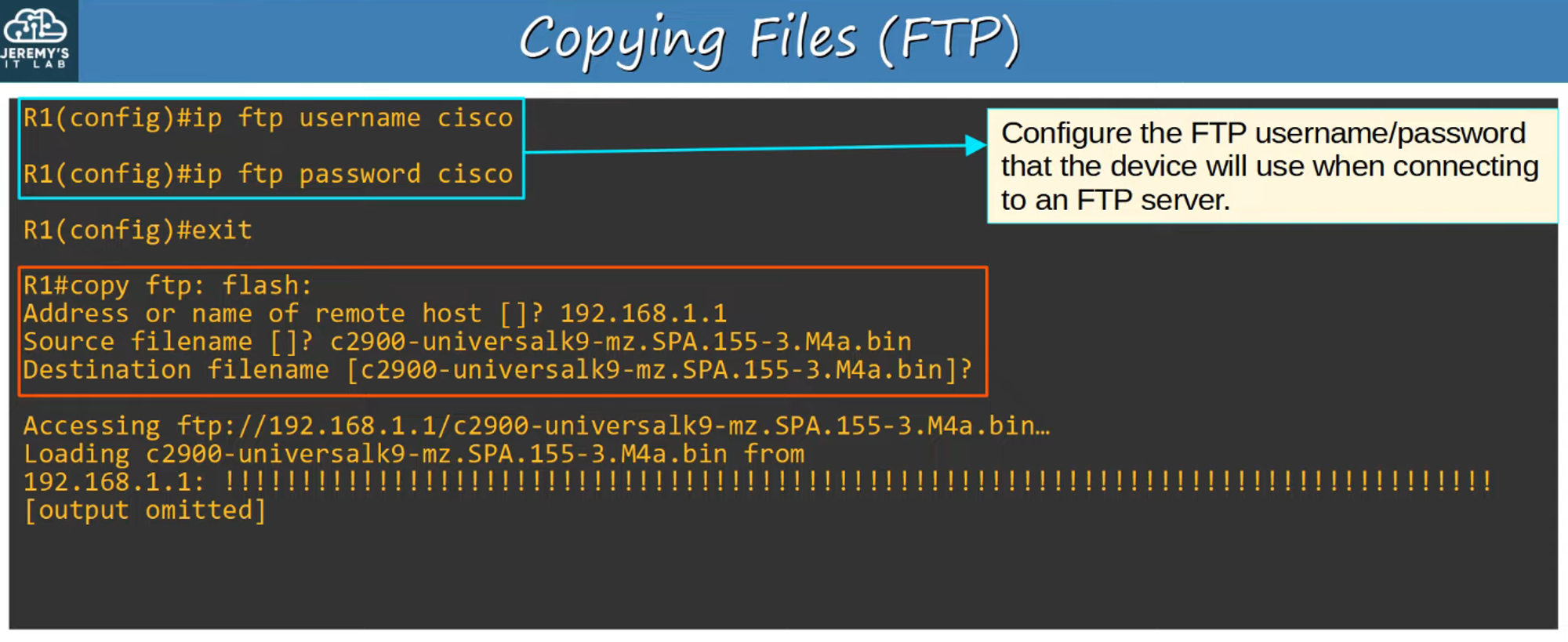 As a network engineer, one of the most common applications for FTP and TFTP is during the operating system upgrade process of a network device. You can download the newer version of IOS from a server and then reboot the device with the updated IOS image.