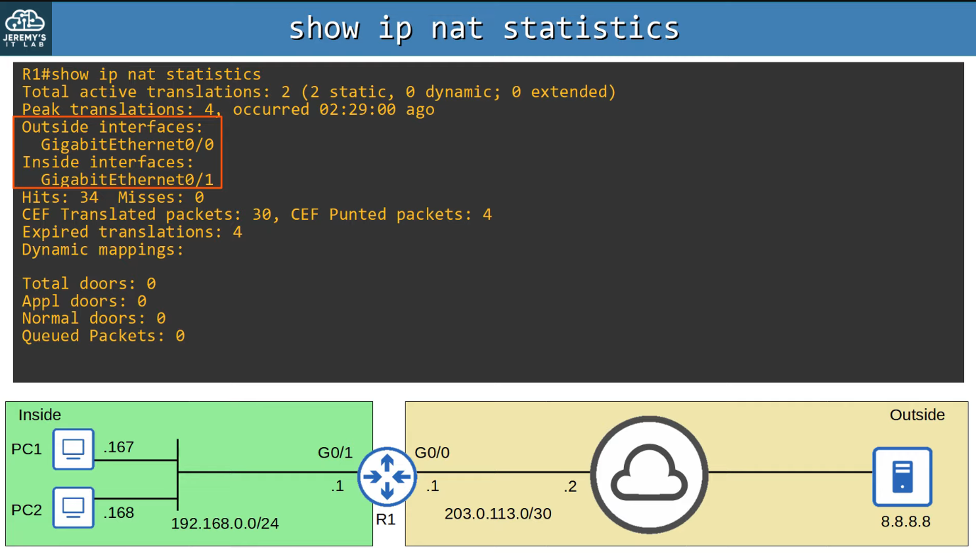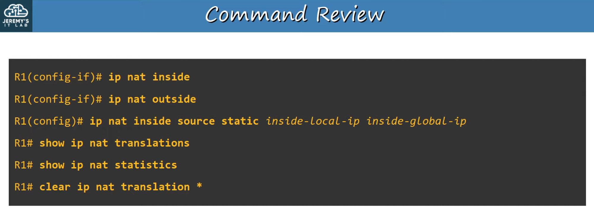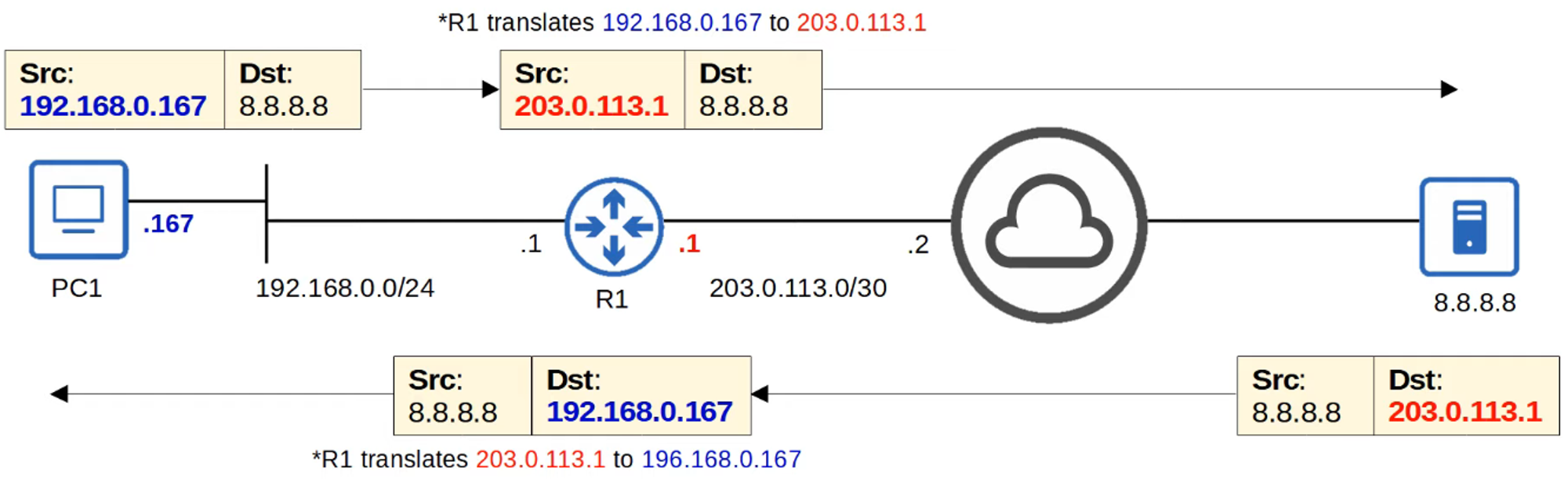 - Static NAT involves configuring one-to-one mappings between private IP addresses and public addresses. This means that each private IP address has a fixed corresponding public IP address.