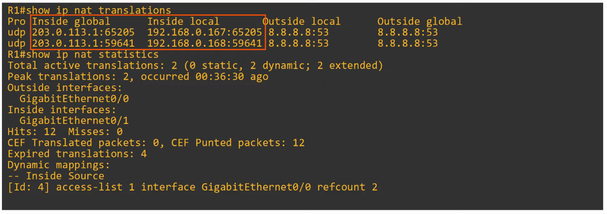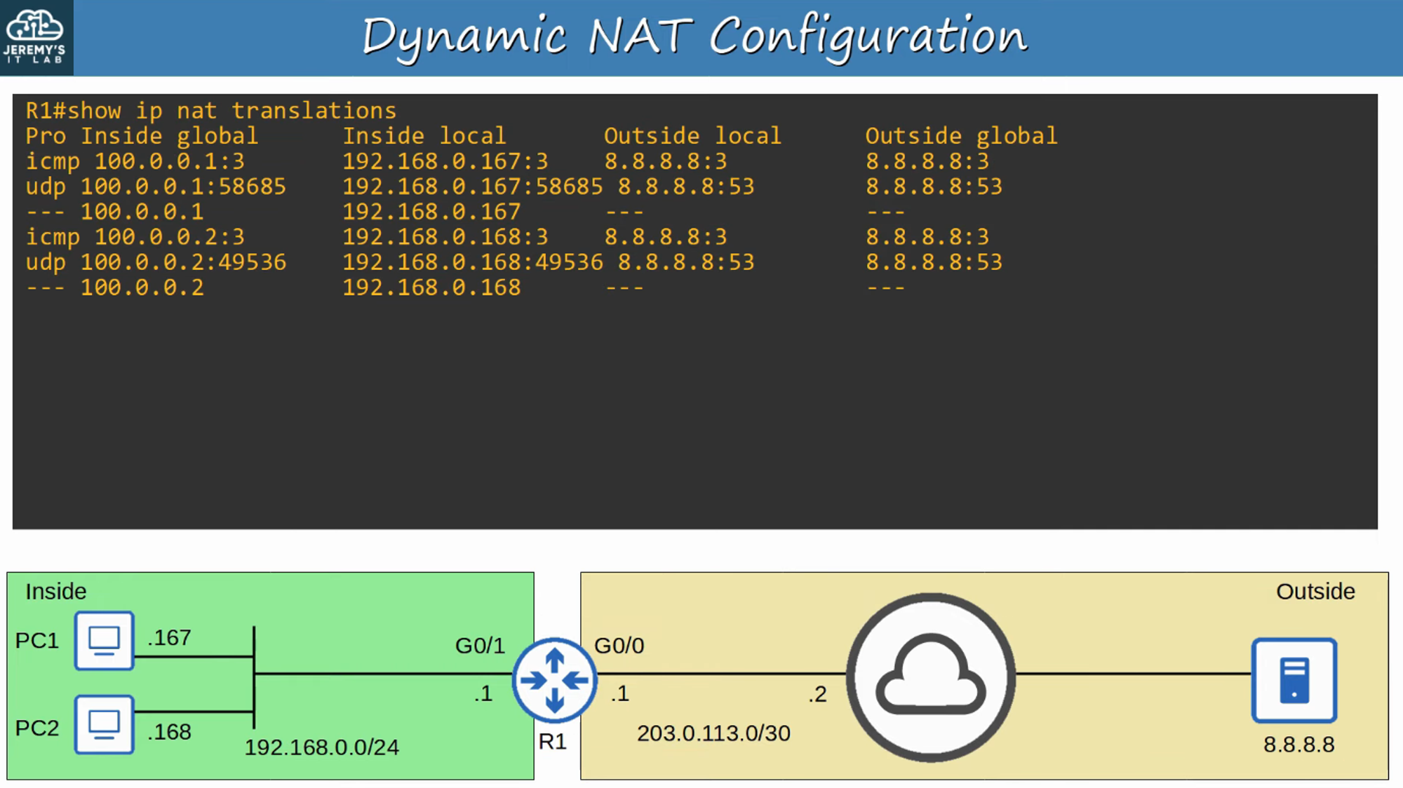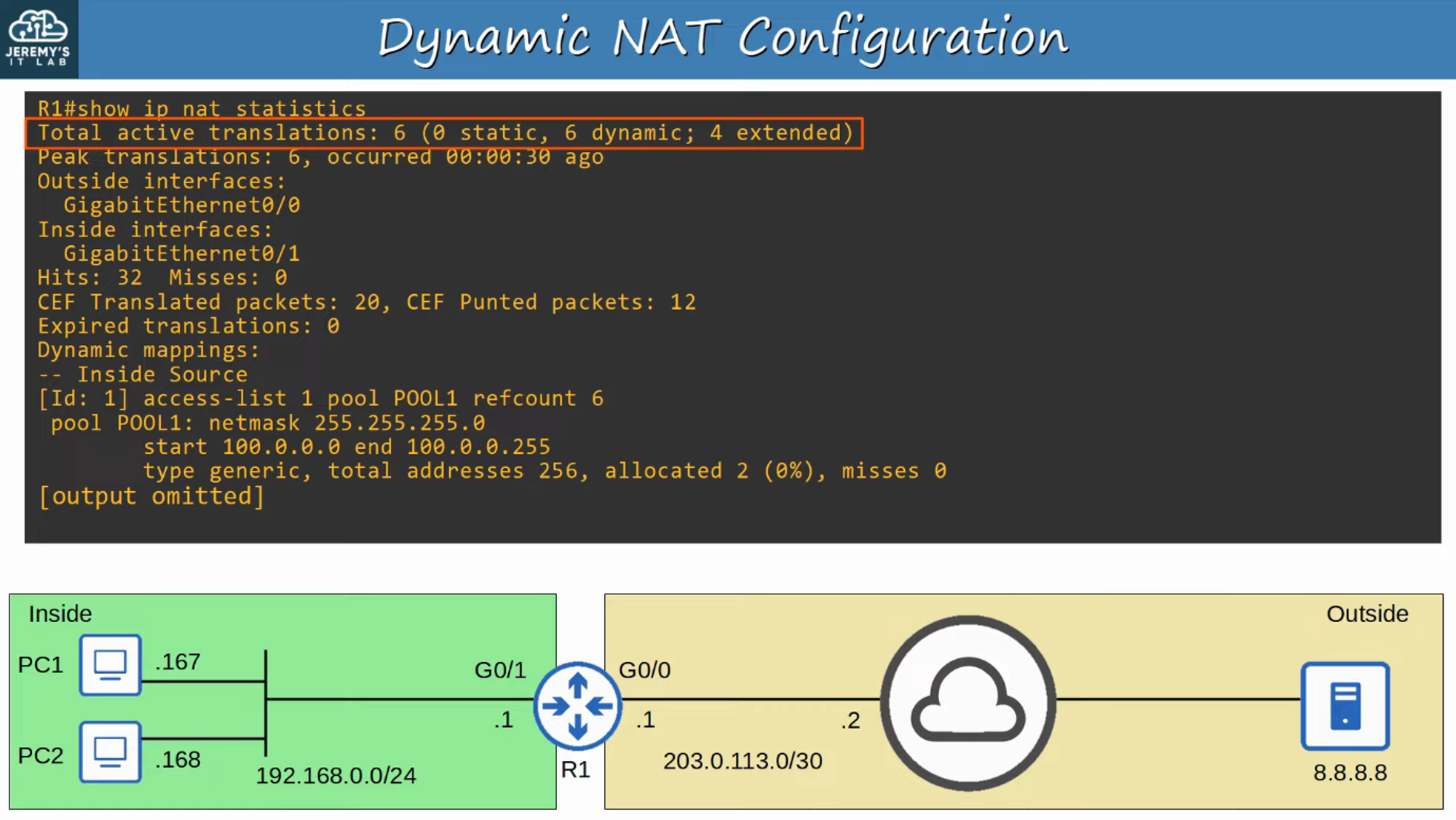 - Dynamic NAT entries will automatically time out if not used, or they can be cleared manually.
