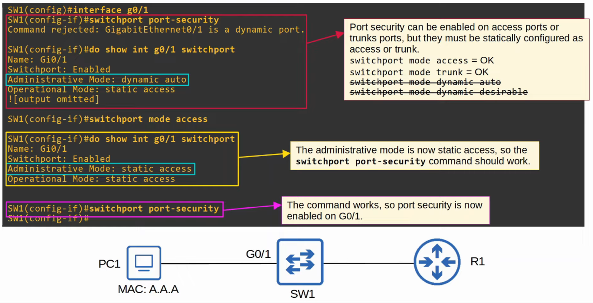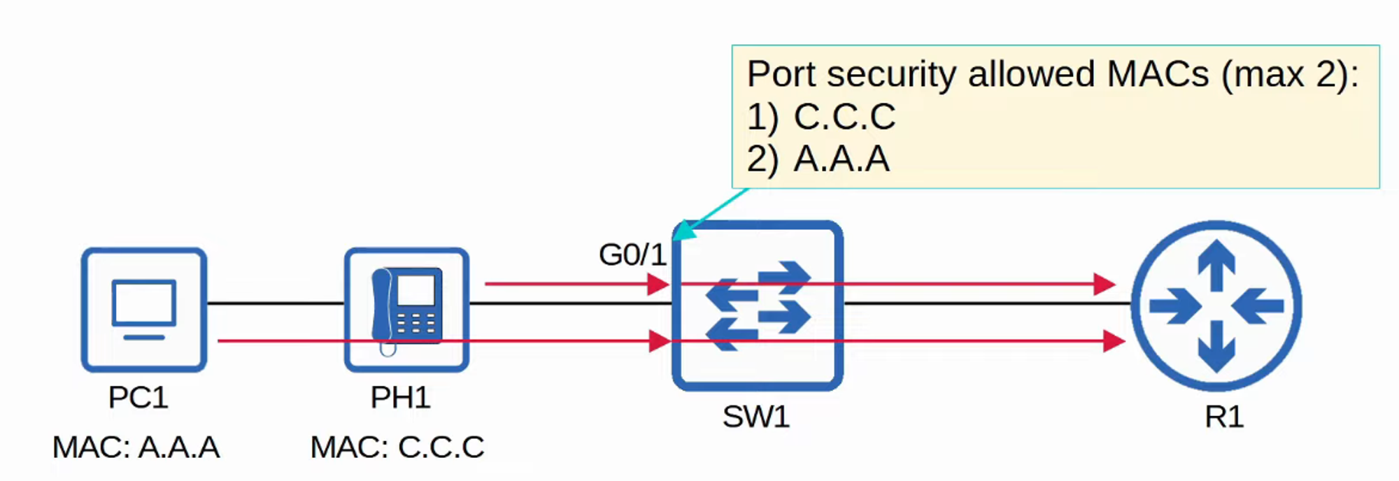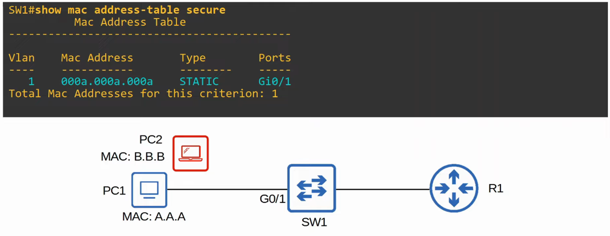 - It ensures that only authorized devices (based on MAC addresses) can send traffic through the switchport.