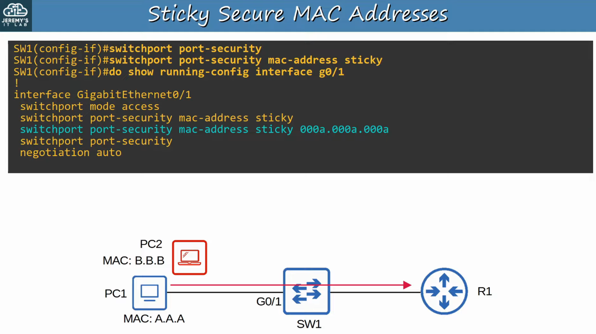 - When the command is issued, all currently learned secure MAC addresses will become sticky.