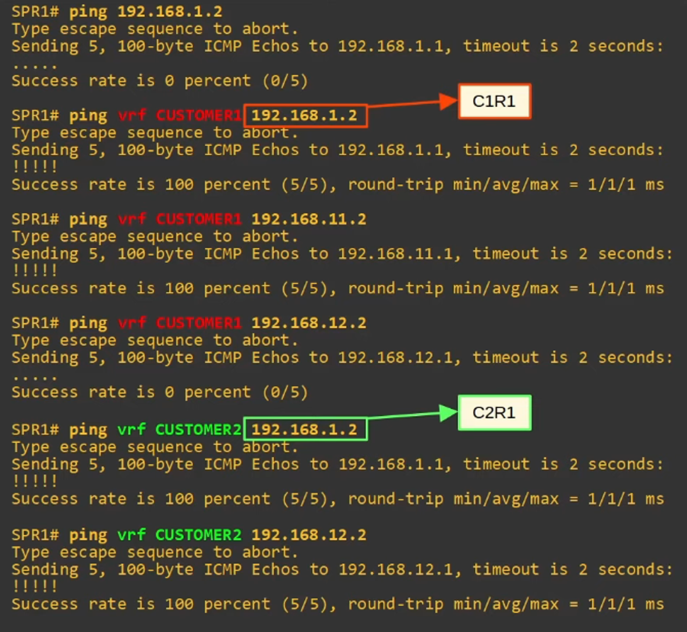 - Service Providers: VRF allows service providers to route traffic from multiple customers on a single device, ensuring complete isolation between customers’ traffic. This isolation is critical, as it prevents overlap of customer IP addresses and secures data from external exposure.
