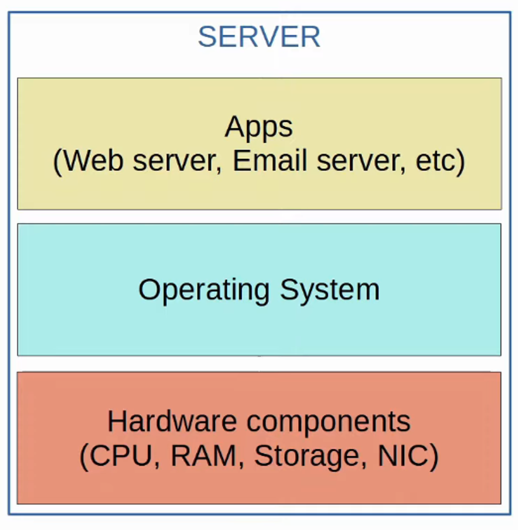 - A separate server was required for each service (e.g., one for the web server, one for the email server, and so on).