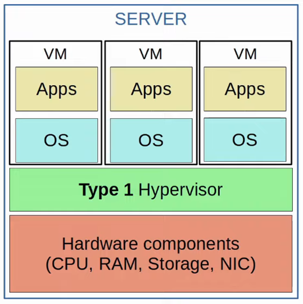 - Examples: VMware ESXi, Microsoft Hyper-V.