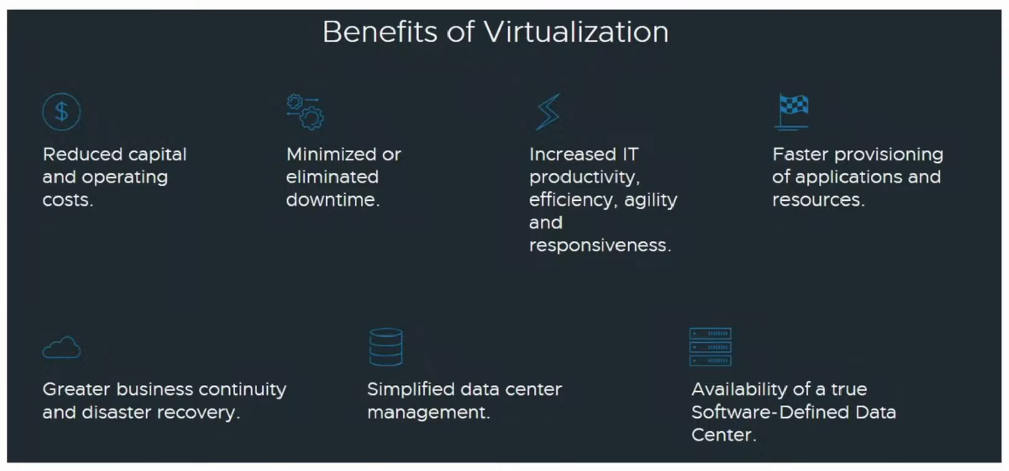 - Virtualization breaks the one-to-one hardware-to-OS relationship.