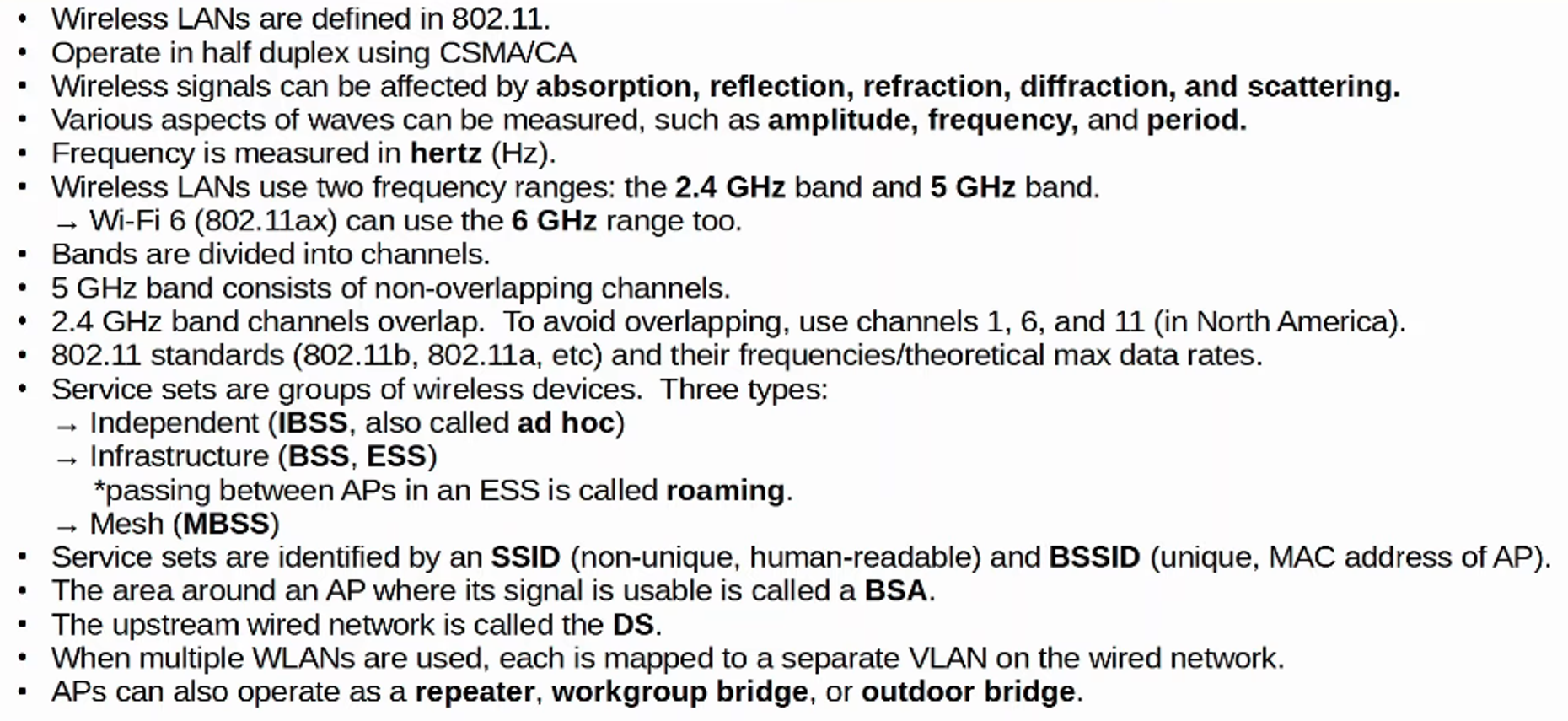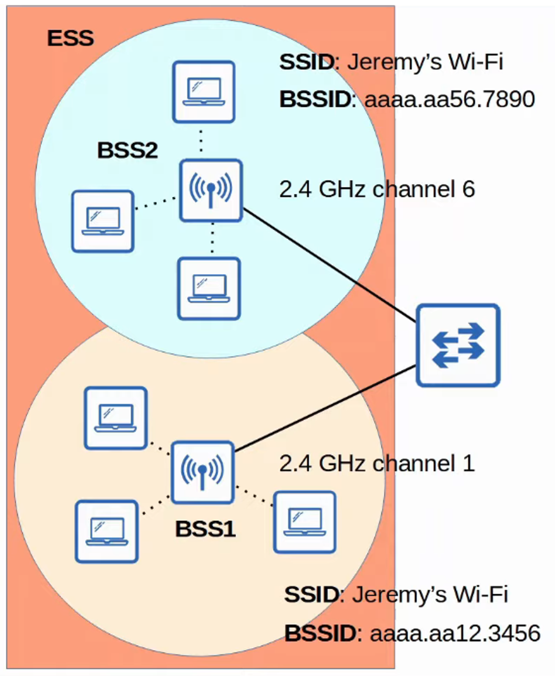 - Other APs can use the SAME SSID but NOT THE SAME BSSID