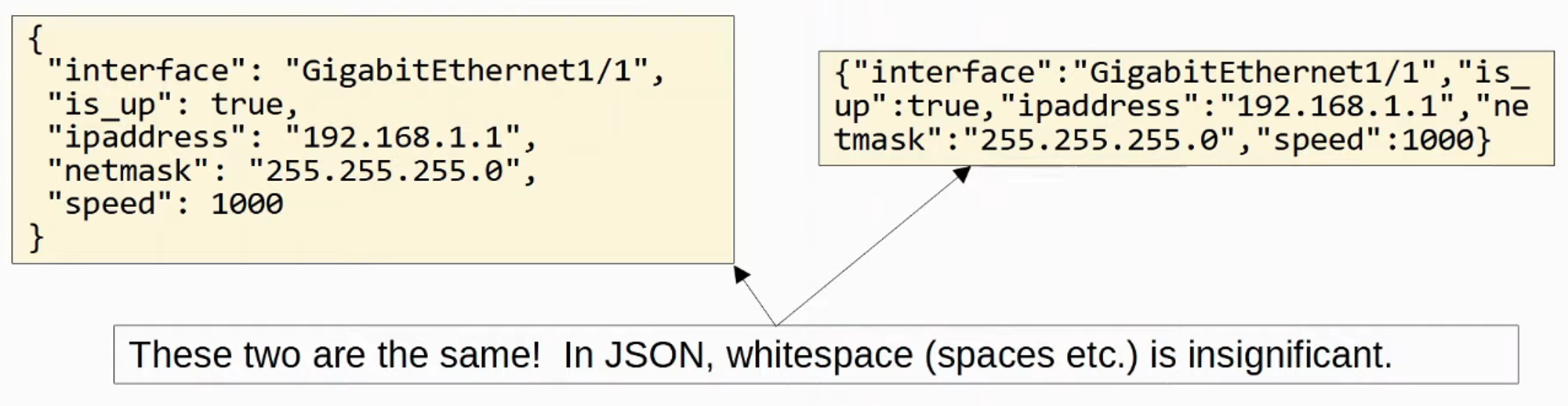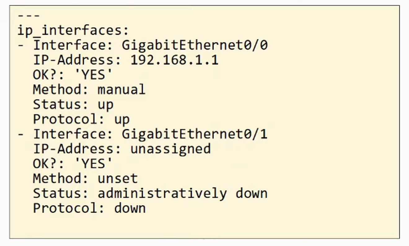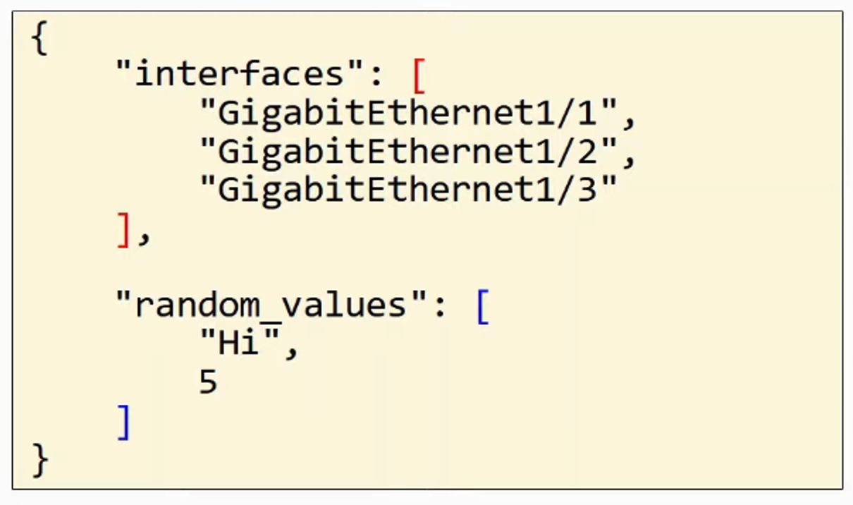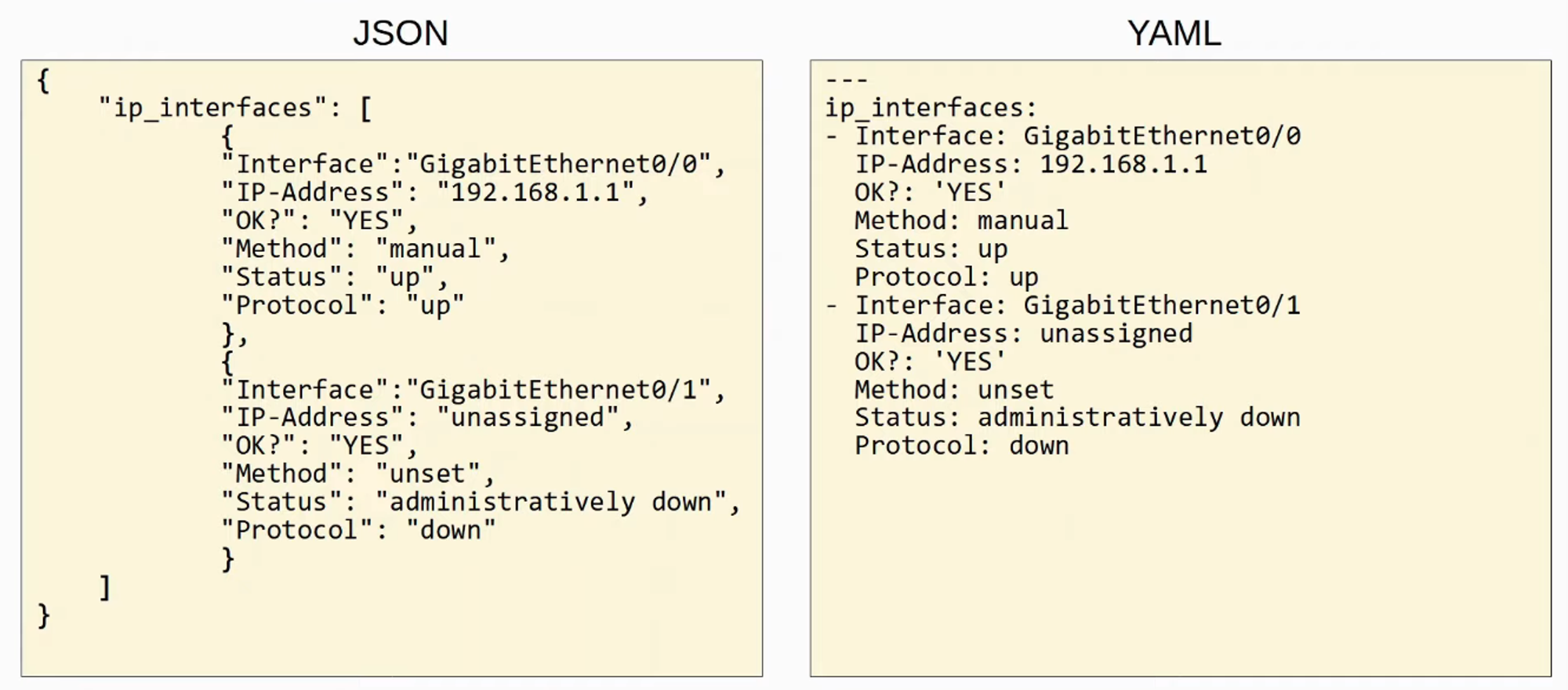- YAML is used by the network automation tool ANSIBLE (covered later in the course)