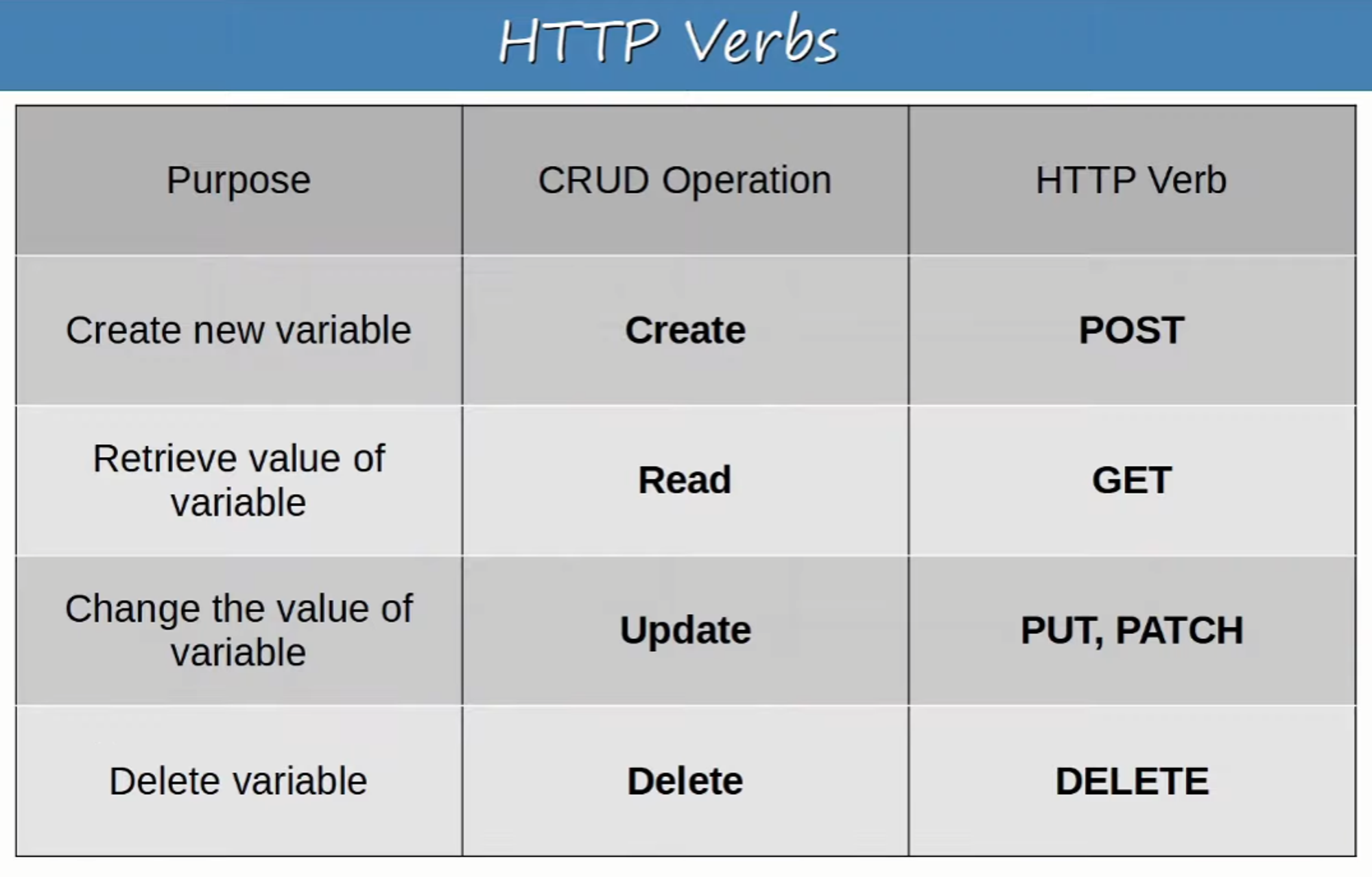 HTTP uses verbs (aka. methods) that map to these CRUD operations