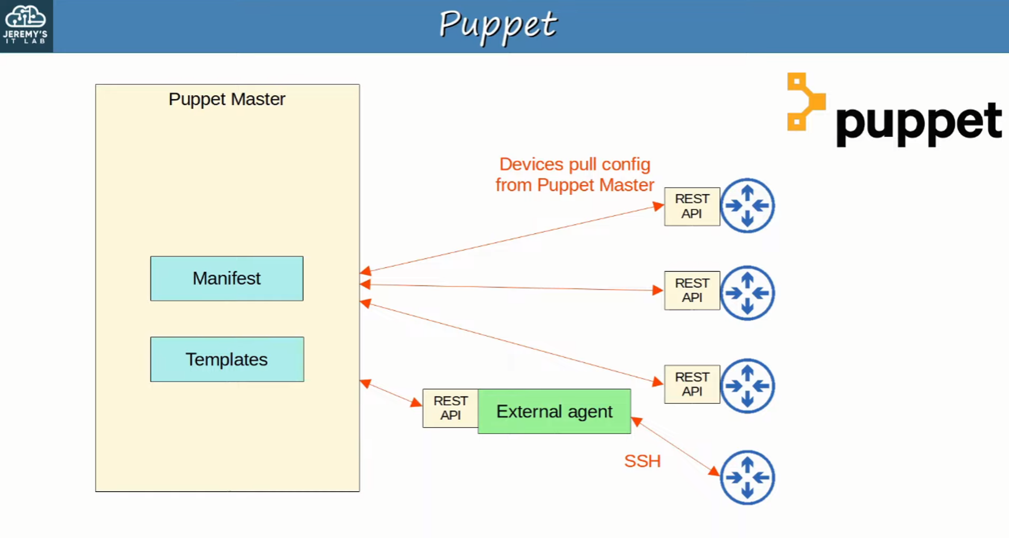 - Not all Cisco devices support a Puppet agent
