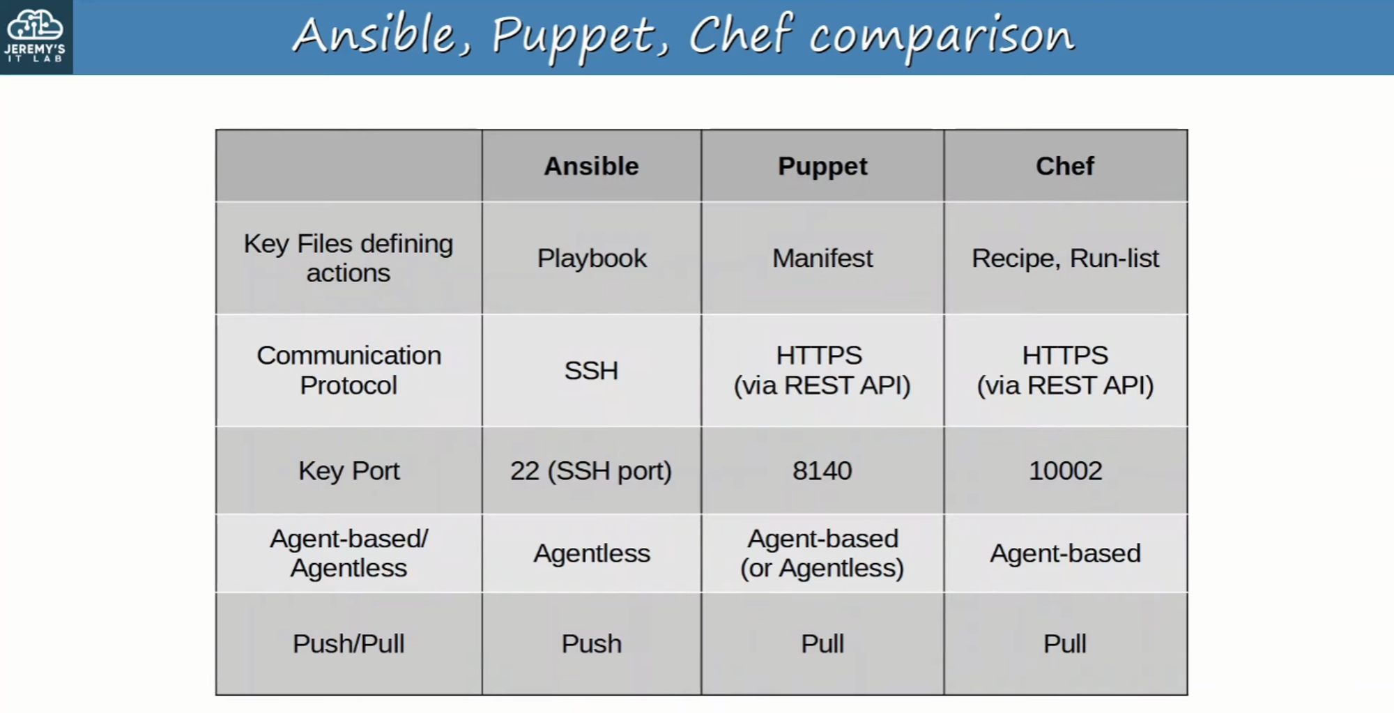 - Puppet and Chef use a pull model