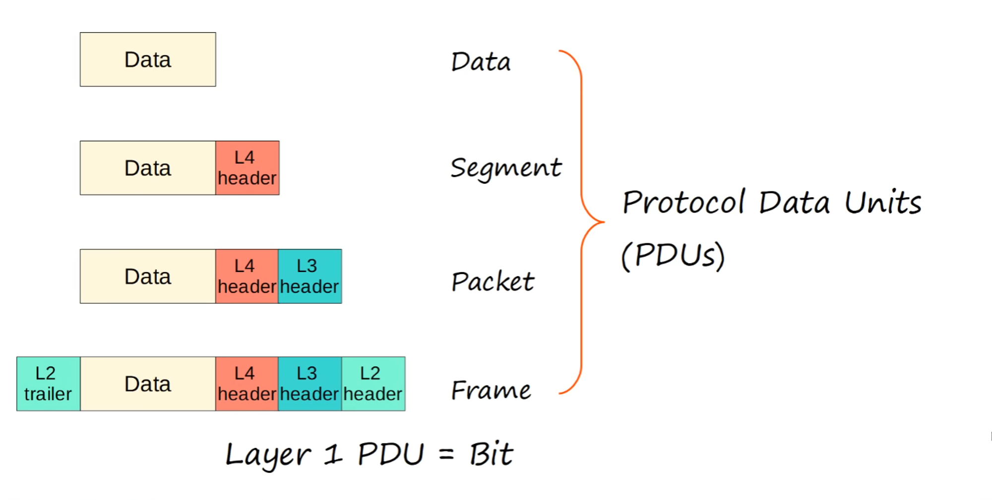 A PDU (Protocol Data Unit) refers to the data format at each layer.
