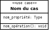 - Variante détaillée : classeur stéréotypé << use case >> pour inclure attributs ou opérations.
