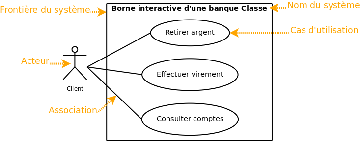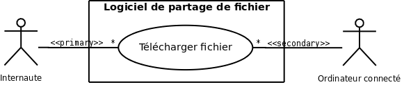 - Principal : celui qui bénéficie directement d’un cas d’utilisation. Se situe a gauche du système.