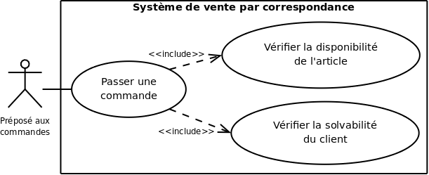 << include >>) : le cas A inclut obligatoirement le comportement du cas B.- Exemple : “Consulter solde” inclut obligatoirement “S’authentifier”.